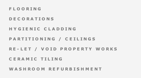 Your requirement may be to update existing decorations or renew flooring only, or further extensive repairs and alterations may be required. Be that partitioning, ceilings, hygienic cladding or a washroom refurbishment, together with all associated trades including lighting or data cabling, we are sure we can assist.